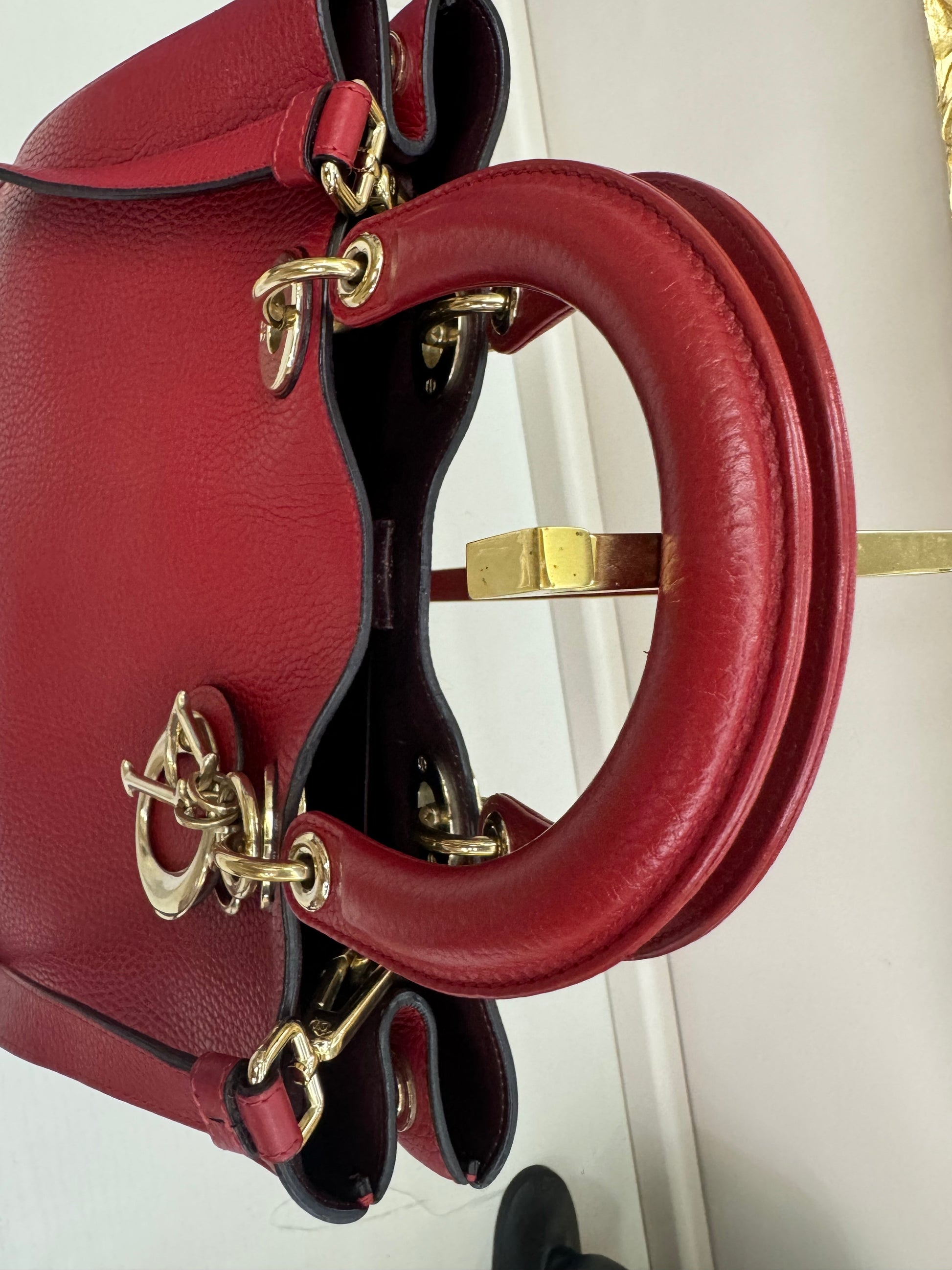 Lady Dior Diorissimo in pelle tinta unita con ciondolo a lettera, materiale: pelle, colore: rosso. Misure: 32x22