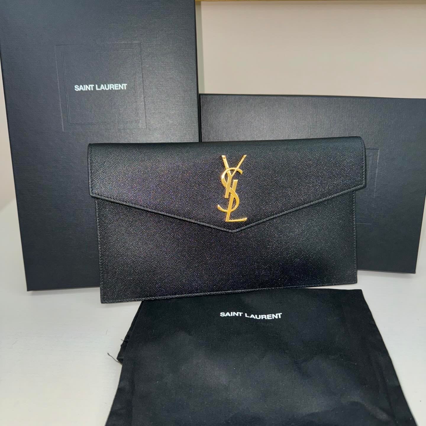 Yves Saint Laurent busta autentica. Presenta l'hardware colore oro. Codice interno. In vera pelle caviar. Chiusura magnetica. Fornita con scatola e dustbag. Dimensioni: 27x16. Nasce come busta da tenere in mano ma è adattabile catena.